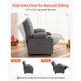 VEVOR Kids Recliner Chair, Toddler Lounger with Cup Holders & Pockets, 107° to 126° Adjustable Back, Breathable Polyester Upholstery Reclining Sofa with Foot-rest, for Boys and Girls, Children (Gray)