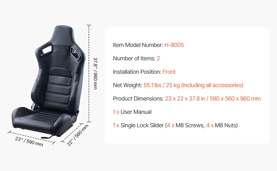Uniwersalne dopasowanie: Nasze fotele wyścigowe pasują do szerokiego grona kierowców. Oba zestawy foteli o wymiarach 23 x 22 x 37,8 cala (590 x 560 x 960 mm) są szersze i bardziej przestronne, dzięki czemu idealnie pasują do większości kierowców. Pasują do różnych typów samochodów, w tym samochodów sportowych, wyścigowych, SUV-ów, a nawet gokartów, zapewniając uniwersalne rozwiązanie dla Twojego pojazdu.