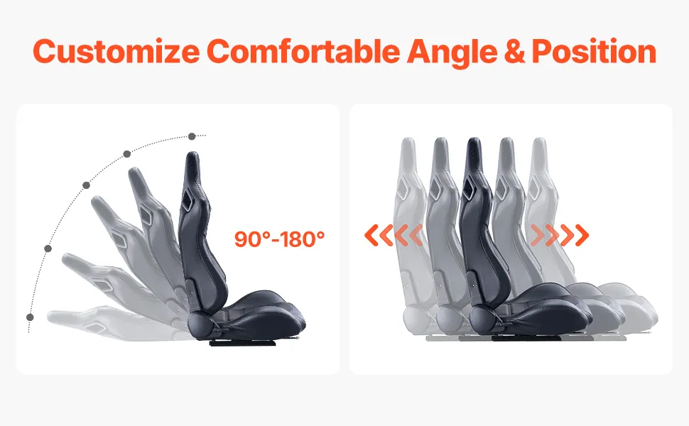 Regulowane: Ciesz się elastycznością naszych foteli wyścigowych. Regulowane oparcie (90°-180°) pozwala na znalezienie idealnej pozycji, od siedzącej, przez leżącą, po półleżącą. Fotel można również przesuwać do przodu i do tyłu, dzięki czemu każdy kierowca znajdzie idealną pozycję siedzącą, zapewniającą maksymalny komfort.