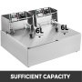 Pojemność: 6 L + 6 L. Wystarczająco dużo miejsca do przygotowania dużych ilości frytek i przekąsek. Maksymalna pojemność oleju: 6 + 6 litrów.
