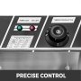 【USTAW ODDZIELNIE】 - Ta frytkownica jest wyposażona w niezależne sterowanie dla każdego zbiornika. Zakres temperatur: 60 ~ 200 ℃ Kontrolki „Power Light” i „Hot Light” wskazują stan pracy urządzenia.