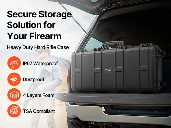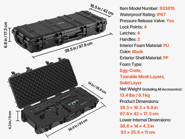 Twardy futerał na broń długą VEVOR, zamykany na klucz futerał na broń długą z wyciętymi piankami, zwijany futerał na broń długą, wodoodporny IP67, 978 x 420 x 173 mm, czarny