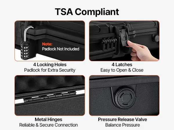 Zgodność z TSA: Ten futerał na karabin spełnia standardy TSA i nadaje się do podróży samolotami, pociągami i innymi środkami transportu. Wyposażony w liczne mechanizmy blokujące, można również przymocować kłódki do zintegrowanych otworów na kłódkę dla dodatkowego bezpieczeństwa (Uwaga: kłódki nie są dołączone).