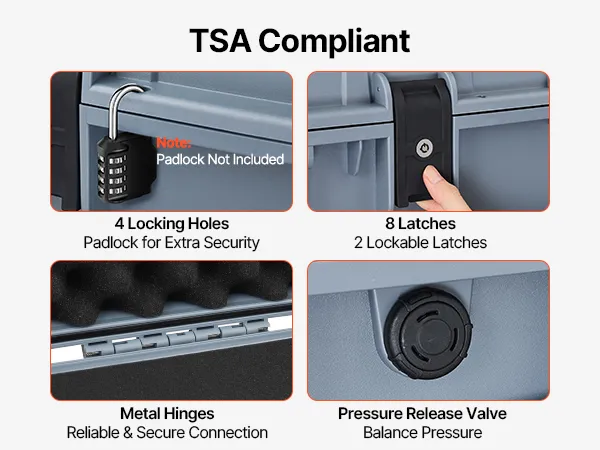 Zgodność z TSA: Ta torba na broń spełnia standardy TSA i nadaje się do podróży samolotami, pociągami i innymi środkami transportu. Wyposażona w liczne mechanizmy blokujące, umożliwia również przymocowanie kłódek do zintegrowanych otworów na kłódkę dla dodatkowego bezpieczeństwa (Uwaga: kłódki nie są dołączone).