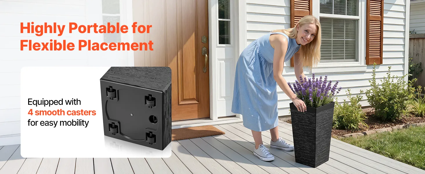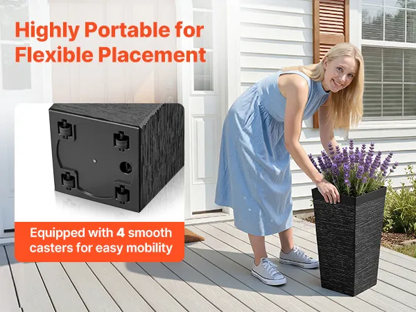 Wyposażone w płynnie poruszające się koła na spodzie, te wysokie donice werandowe można przemieszczać w poziomie między różnymi miejscami, nawet w ciasnych przestrzeniach.