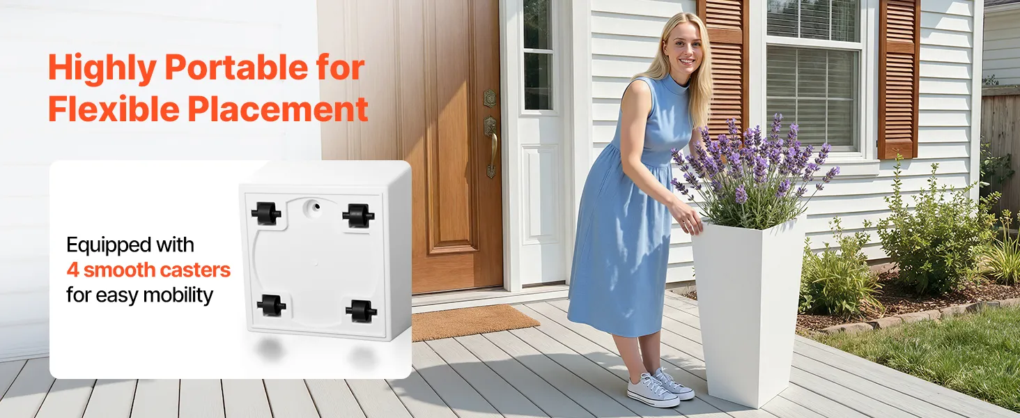 Wyposażone w płynnie poruszające się kółka na spodzie, te wysokie donice werandowe można przemieszczać w poziomie między różnymi miejscami, nawet w ciasnych przestrzeniach.