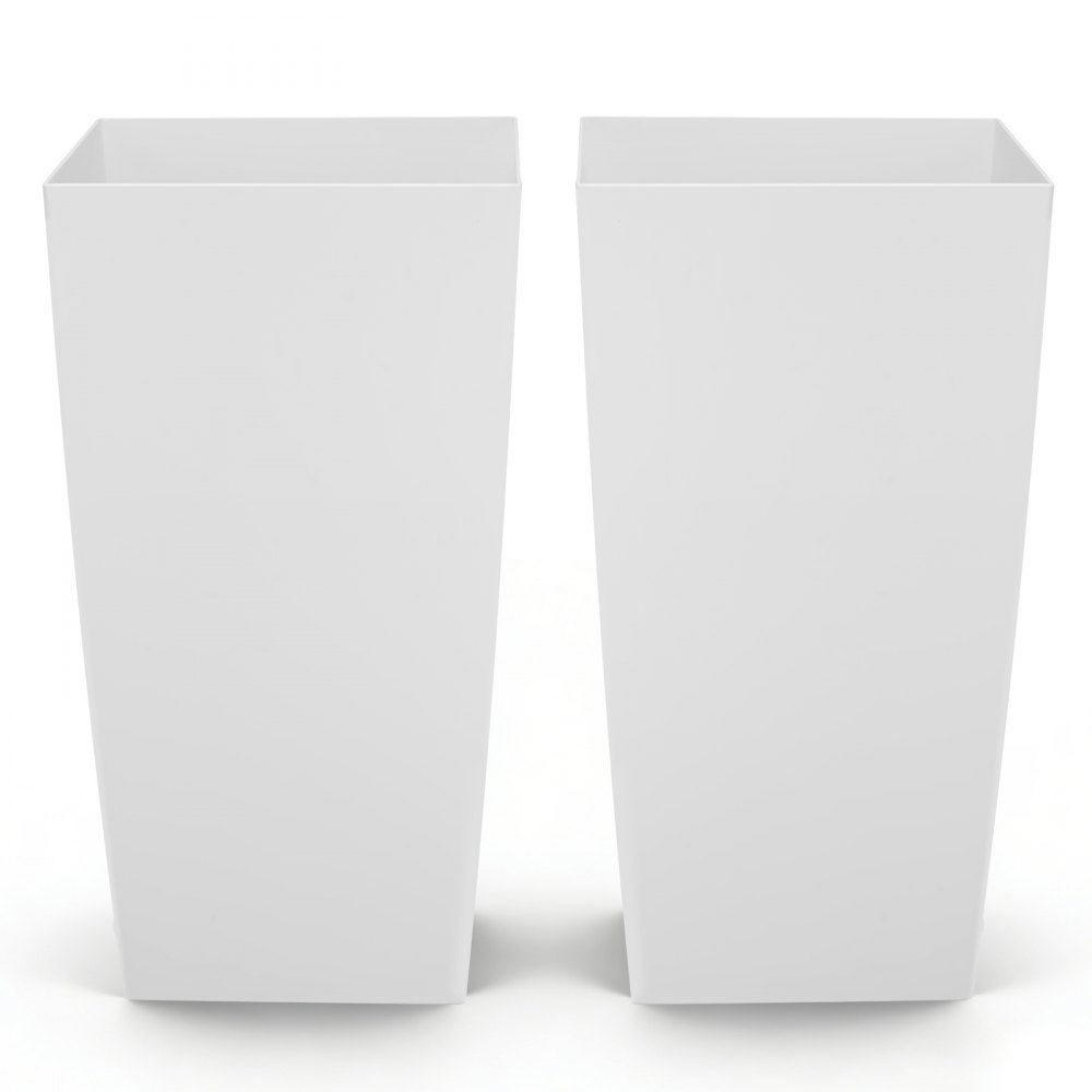 VEVOR Tall Planters Set of 2, 750 mm Large Outdoor Taper Planters for Outdoor Indoor Plants, Front Porch Plastic Modern Flower Pots with Casters, Inner Pot & Drainage Holes for Patio, Garden, White