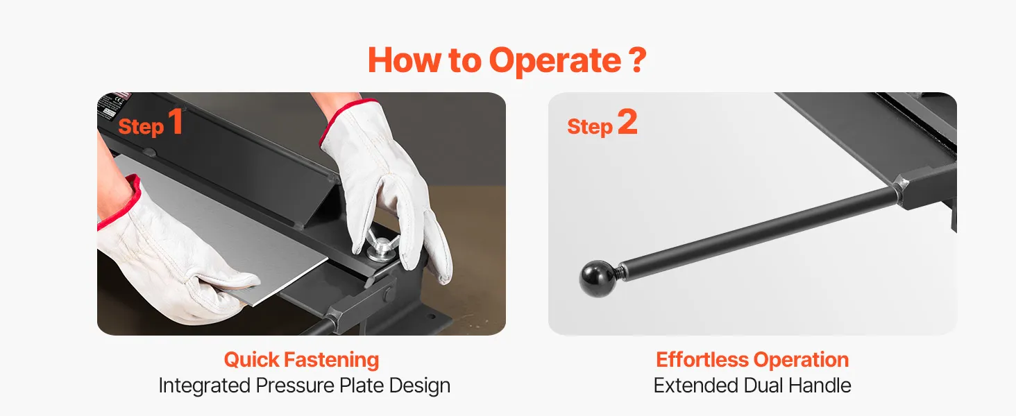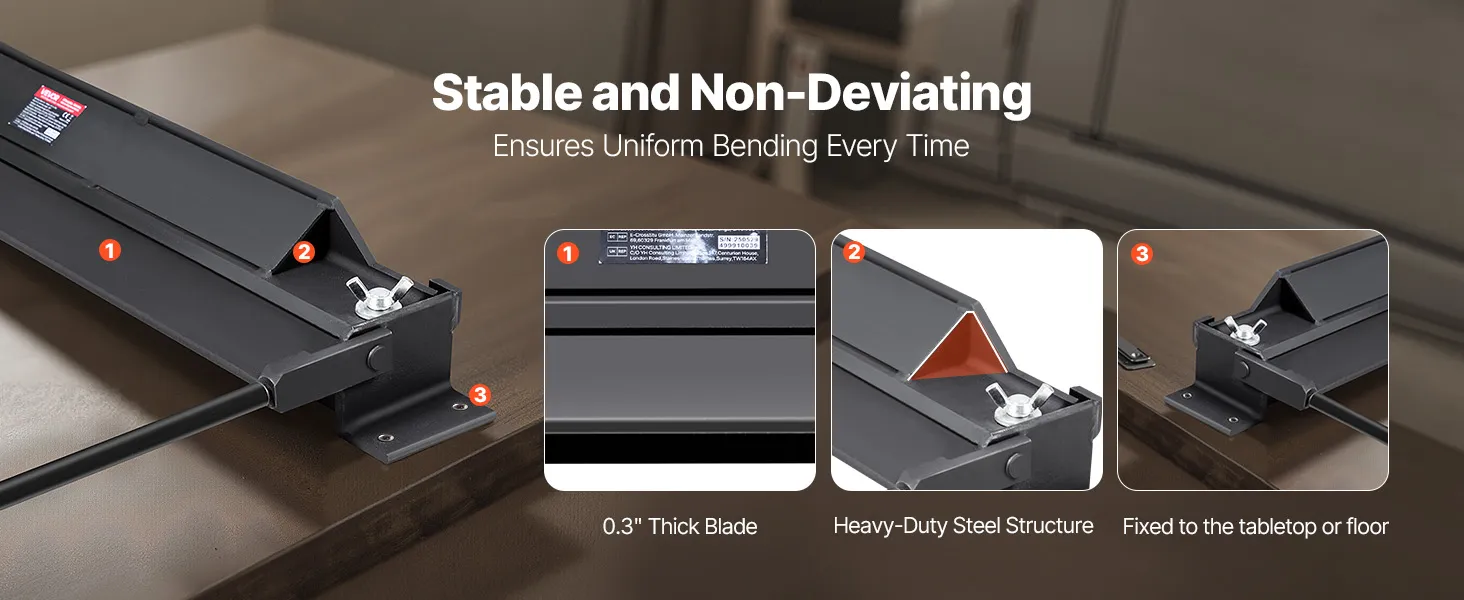 Przenośna i łatwa w użyciu: Aluminiowa giętarka krawędziowa jest łatwa w użyciu. Wystarczy dokręcić boczne śruby, aby zabezpieczyć blachę, a następnie unieść uchwyt pod żądanym kątem. Prosta, wydajna i idealna zarówno dla początkujących, jak i profesjonalistów.