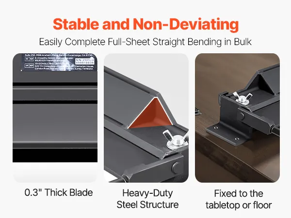 Solidna konstrukcja ze stali węglowej ze wzmocnionymi żebrami zapewnia większą stabilność i trwałość. Wstępnie nawiercone otwory montażowe umożliwiają przymocowanie hamulca do stołu warsztatowego lub podłogi, minimalizując poślizg i gwarantując niezmiennie precyzyjne rezultaty.