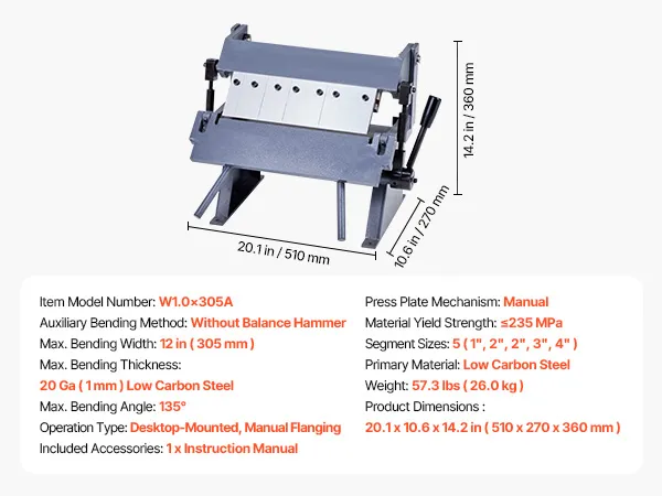 Gięcie metalu jak profesjonalista z tą 12-calową (305 mm) giętarką do blachy. Idealna do warsztatów, ta giętarka ramowa obsługuje stal o grubości 20 (1 mm), obsługuje różnorodne materiały i posiada modułowe palce do skomplikowanych gięcia – jest łatwa w obsłudze, stabilna i zaprojektowana z myślą o precyzyjnym gięciu.