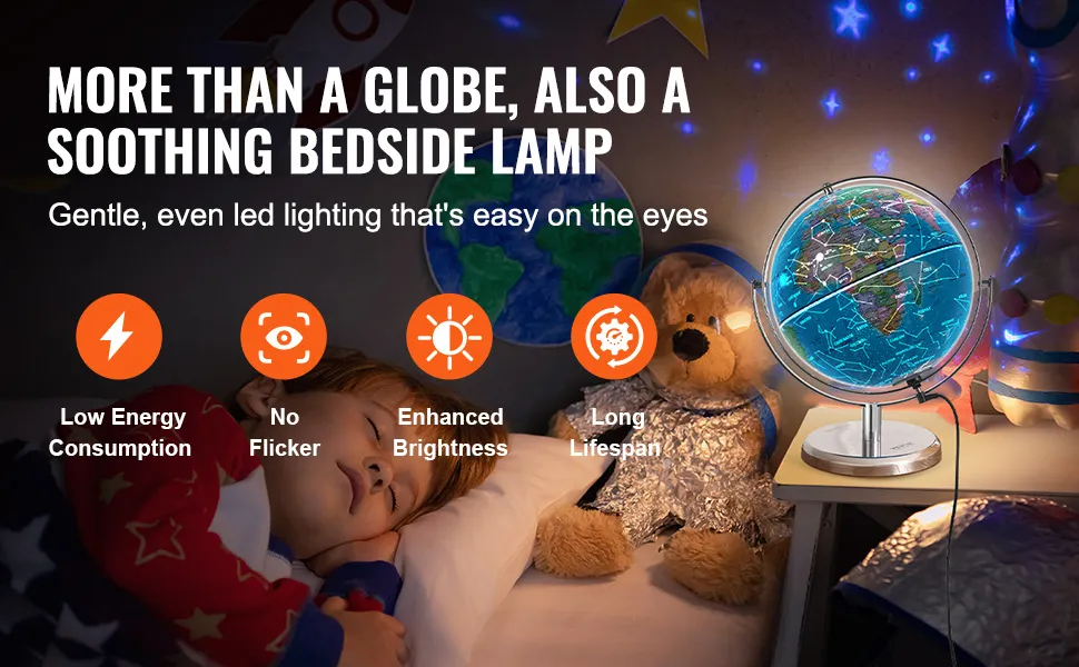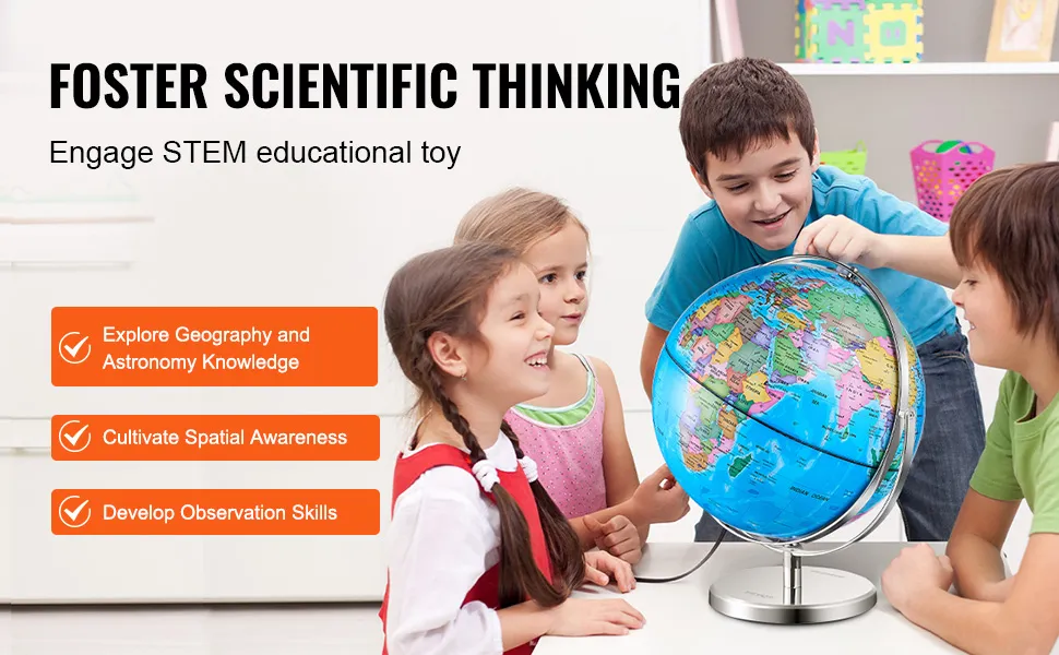 To najlepszy sposób na uzupełnienie tradycyjnych metod nauczania. Globus ma podwójną funkcjonalność i solidny design. Dlatego jest doskonałym dodatkiem do każdego środowiska edukacyjnego. Dzięki swojemu wizualnemu/interaktywnemu narzędziu nauczyciele i rodzice mogą skutecznie uczyć geografii, astronomii i innych pokrewnych przedmiotów. Zapewniając Ci wizualne i interaktywne urządzenie, nauka staje się przyjemniejsza i skuteczniejsza. Dzięki wyraźnym szczegółom i żywym kolorom nauka jest zabawna i angażująca.