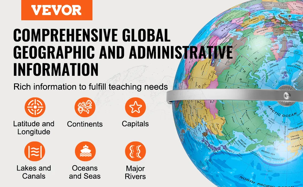 Podświetlany globus VEVOR ma żywe kolory i wyraźny nadruk. Dzięki temu dzieci mogą łatwo identyfikować różne kraje i kontynenty. Wyraźny kontrast między kolorami ułatwia rozpoznawanie. Nadruk jest wyraźny i ostry, dzięki czemu można łatwo rozpoznawać różne przedmioty. Ulepsza to doświadczenie edukacyjne, dostarczając jasnych i dokładnych informacji. Sprawia, że jest on atrakcyjny wizualnie i przyciąga uwagę dzieci. Funkcja ta jest niezbędna do efektywnej nauki i zapamiętywania.