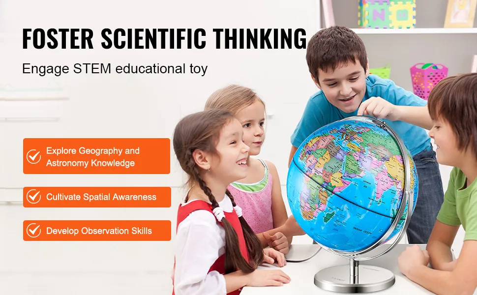 Podświetlany globus świata VEVOR został stworzony zarówno do zabawy, jak i celów edukacyjnych. Urzeka dzieci swoimi interaktywnymi funkcjami. Dzieci mogą uczyć się o krajach, stolicach i geografii w zabawny sposób. Konstelacje dodają dodatkową warstwę wartości edukacyjnej. Konstelacje są odpowiednie dla wieku od małych dzieci do starszych uczniów. Łatwy w użyciu przełącznik włączania/wyłączania promuje niezależność. Dzieci mogą włączać i wyłączać go samodzielnie, ulepszając swoje doświadczenie edukacyjne. Interaktywna natura globusa sprawia, że dzieci są zaangażowane i zainteresowane nauką.