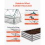 • Wzmocniona i stabilna konstrukcja: Ta donica ogrodowa jest wyposażona w solidne nogi, panele boczne i podpory, które zapobiegają wybrzuszaniu, nawet w mokrej glebie. Szklarnia, dzięki stalowej ramie i przedłużonej osłonie, jest odporna na wiatr i stabilna.