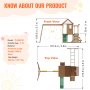 Zestawy huśtawek ogrodowych 10 w 1: Nasz wielofunkcyjny zestaw drewnianych huśtawek zapewnia niekończącą się zabawę i przygody dzięki wszechstronnym funkcjom. Zestaw zawiera dwie regulowane huśtawki, drążek trapezowy, zjeżdżalnię o długości 1,8 m (6 stóp), fort z zabawkami kuchennymi, piaskownicę (piasek nie jest dołączony), ściankę wspinaczkową, płaską drabinę, drabinę sztormową i stół piknikowy.