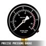 precyzyjny manometr na prasie hydraulicznej VEVOR pokazujący jednostki metryczne i amerykańskie.