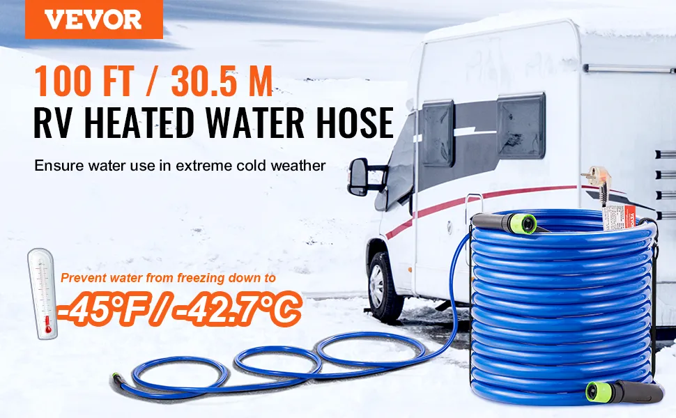 W większości regionów zwykłe węże doprowadzające wodę zamarzają w zimowe noce z powodu niskich temperatur. Dzięki podgrzewanemu wężowi wodnemu VEVOR do pojazdu kempingowego możesz cieszyć się normalnym zużyciem wody w samochodzie kempingowym nawet przy temperaturze -42,7°C.