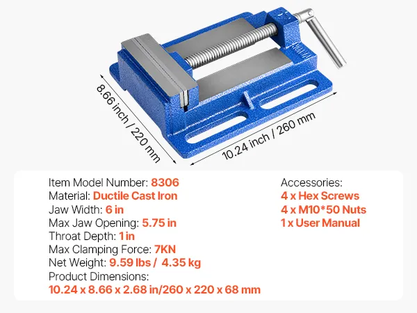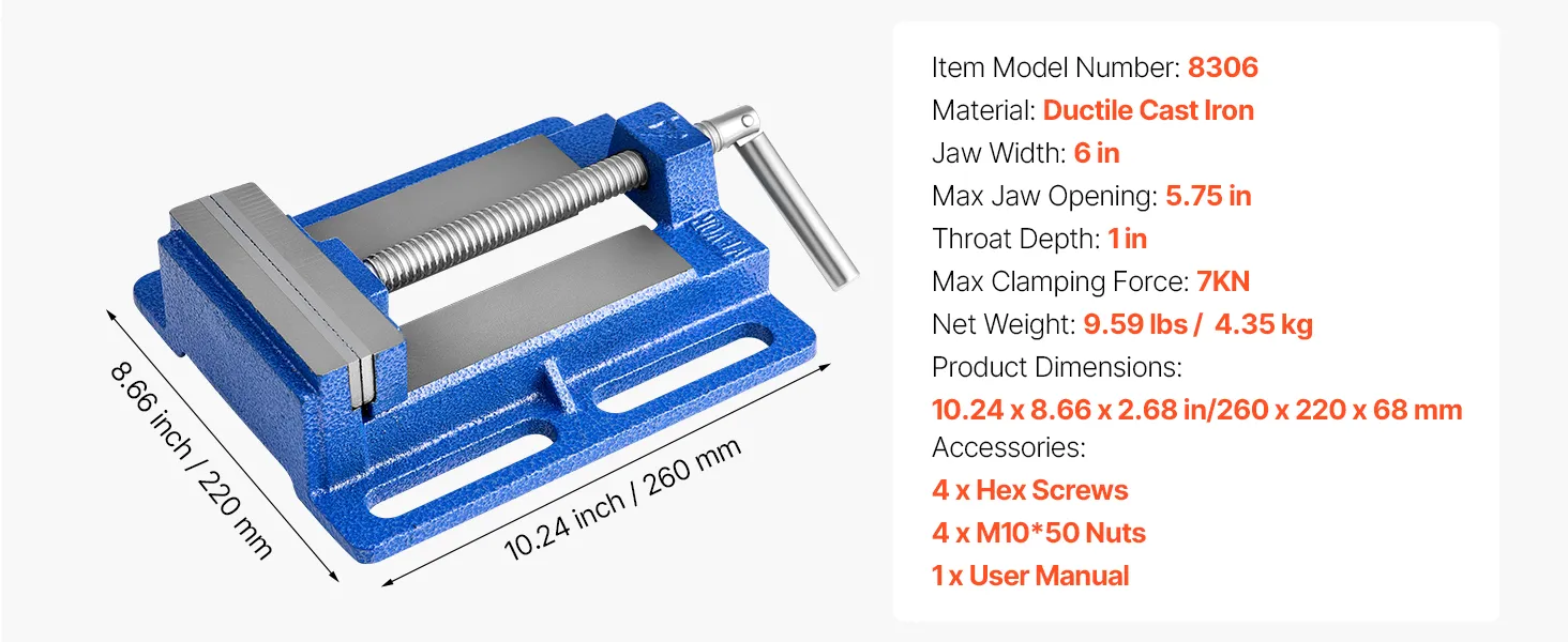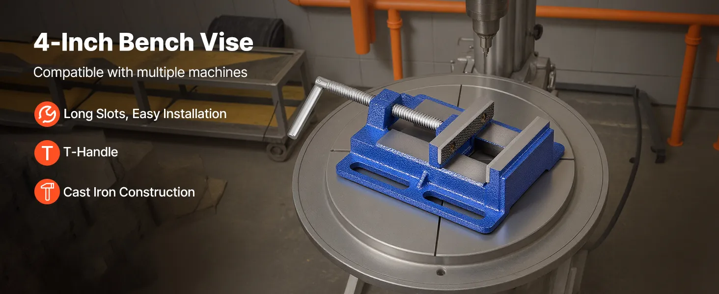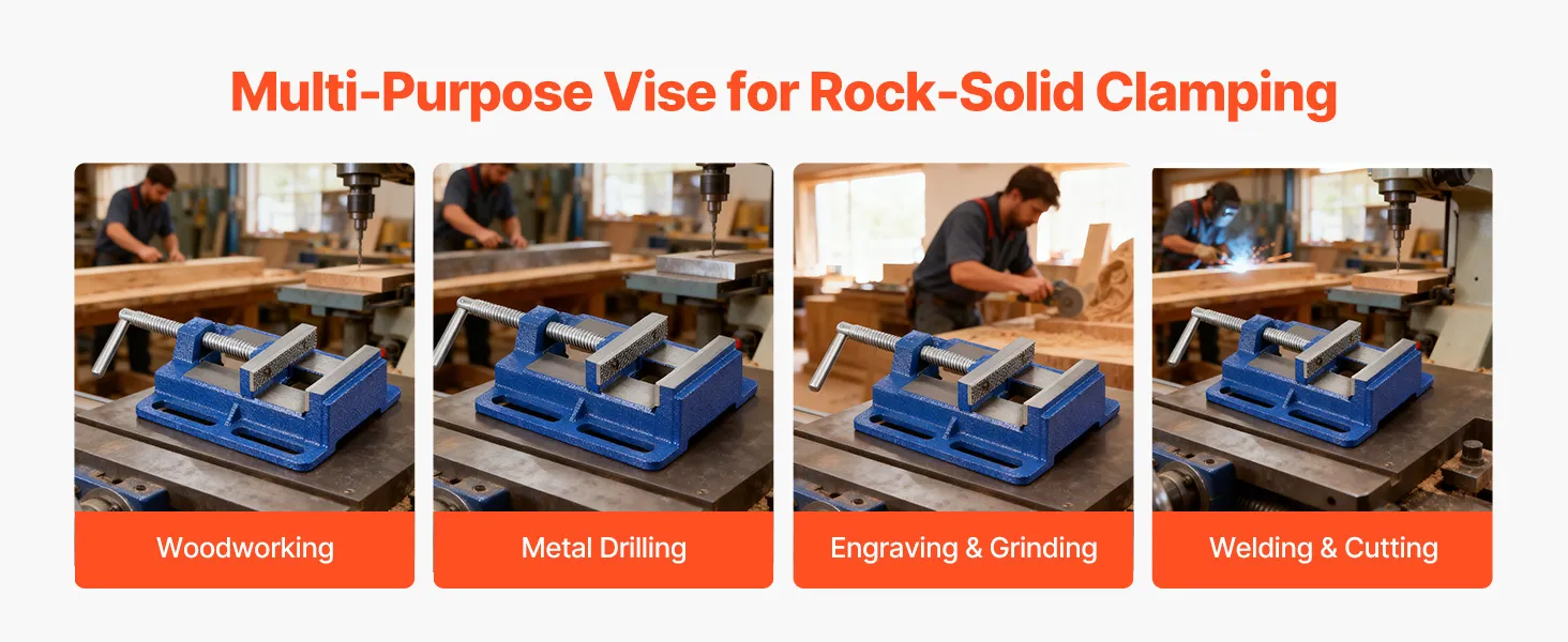 Szeroka kompatybilność: Ten imadło warsztatowe idealnie nadaje się do frezarek, wiertarek, obrabiarek do gięcia i szlifierek do płaszczyzn. Jego wszechstronność pozwala mu sprostać zróżnicowanym wymaganiom obróbczym i służyć jako niezawodny pomocnik.