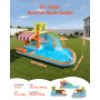Więcej możliwości zabawy: Z przestronnym placem do skakania, stoiskiem z zabawkami i brodzikiem, ten dmuchany zamek oferuje różnorodną zabawę dla dzieci i rodzin. Pistolet na wodę zapewnia równomierny strumień, utrzymuje zjeżdżalnię i brodzik w gotowości do zabawy i tworzy ekscytujące wrażenia niczym w dmuchanym parku wodnym.