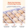 Automatyczne obracanie jaj o 180° (pojedynczy obrót): Ten inkubator imituje uważne wysiadywanie jaj przez kurę i automatycznie obraca jaja w sześciu wybieralnych odstępach czasu, po 10 sekund każdy. Zapobiega to sklejaniu się zarodków i zapewnia równomierne ogrzewanie.