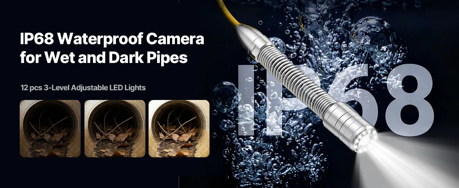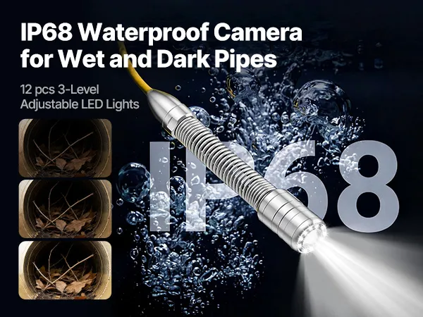 Ta kamera do inspekcji kanalizacji ma stopień ochrony IP68 (jest wodoodporna), dlatego może być niezawodnie używana nawet w wilgotnych warunkach.
