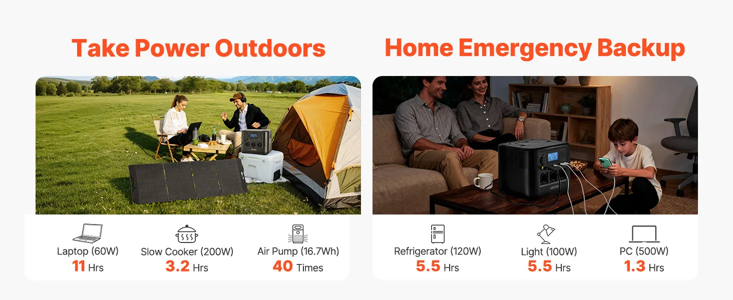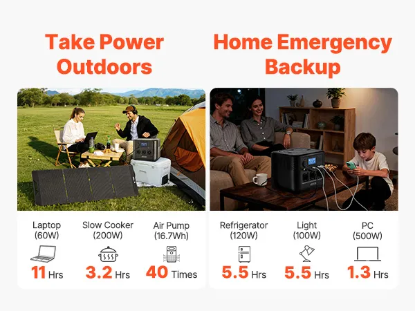 Dzięki dużej pojemności 806 Wh i mocy wyjściowej 1200 W ta przenośna elektrownia w połączeniu z panelem słonecznym o mocy 200 W zapewnia wystarczającą i zrównoważoną energię na wypadek sytuacji awaryjnych w domu i na kempingu – dzięki czemu będziesz przygotowany i zasilany, gdziekolwiek będziesz.