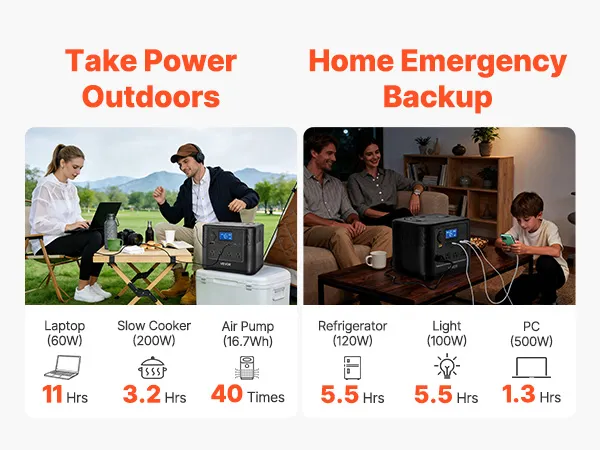 Lightweight & Portable: Compact and easy to carry, this power station solar generator is a reliable outdoor companion that lets you charge devices anytime, anywhere. Well suited for home emergency backup and outdoor camping