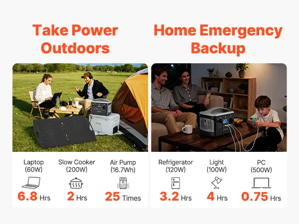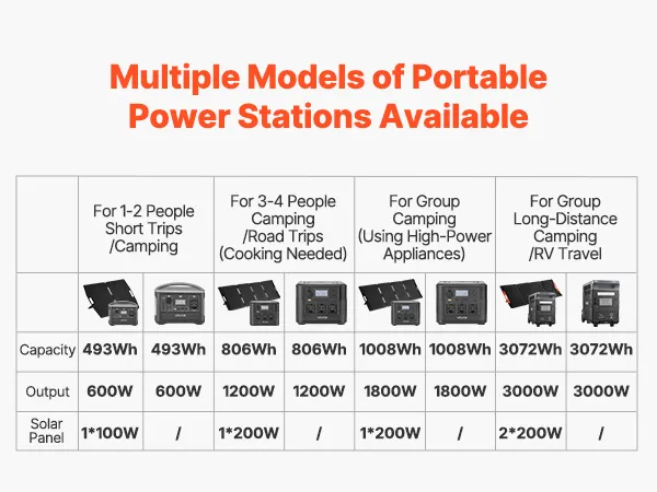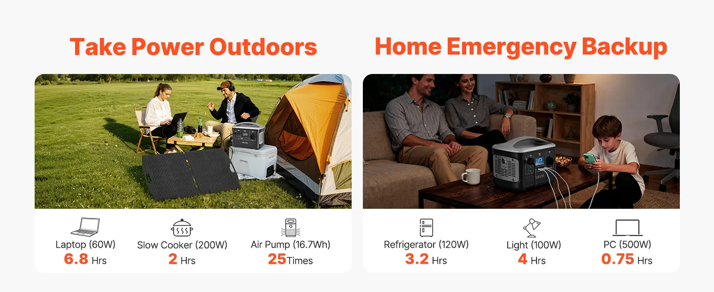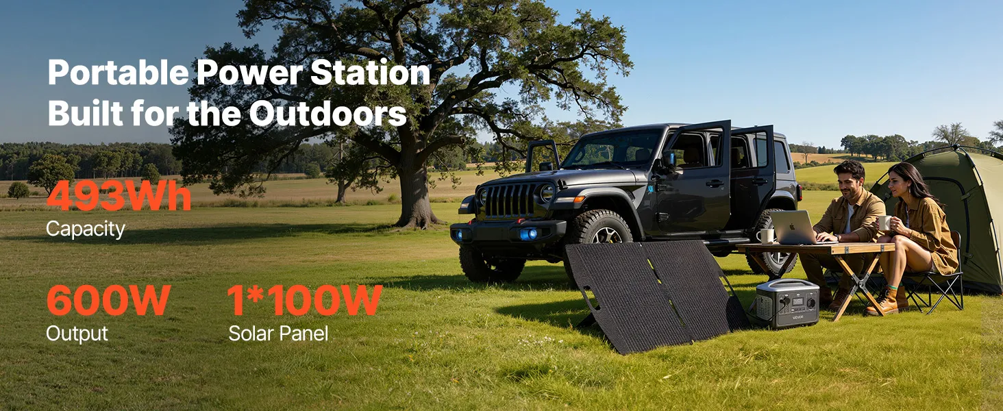 Dzięki dużej pojemności 493 Wh i mocy wyjściowej 600 W ta przenośna elektrownia w połączeniu z panelem słonecznym o mocy 100 W zapewnia wystarczającą i zrównoważoną energię na wypadek sytuacji awaryjnych w domu i na kempingu – dzięki czemu będziesz przygotowany i zasilany, gdziekolwiek będziesz.