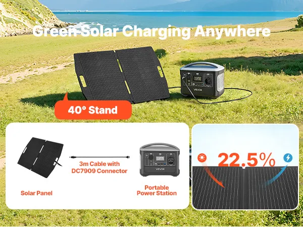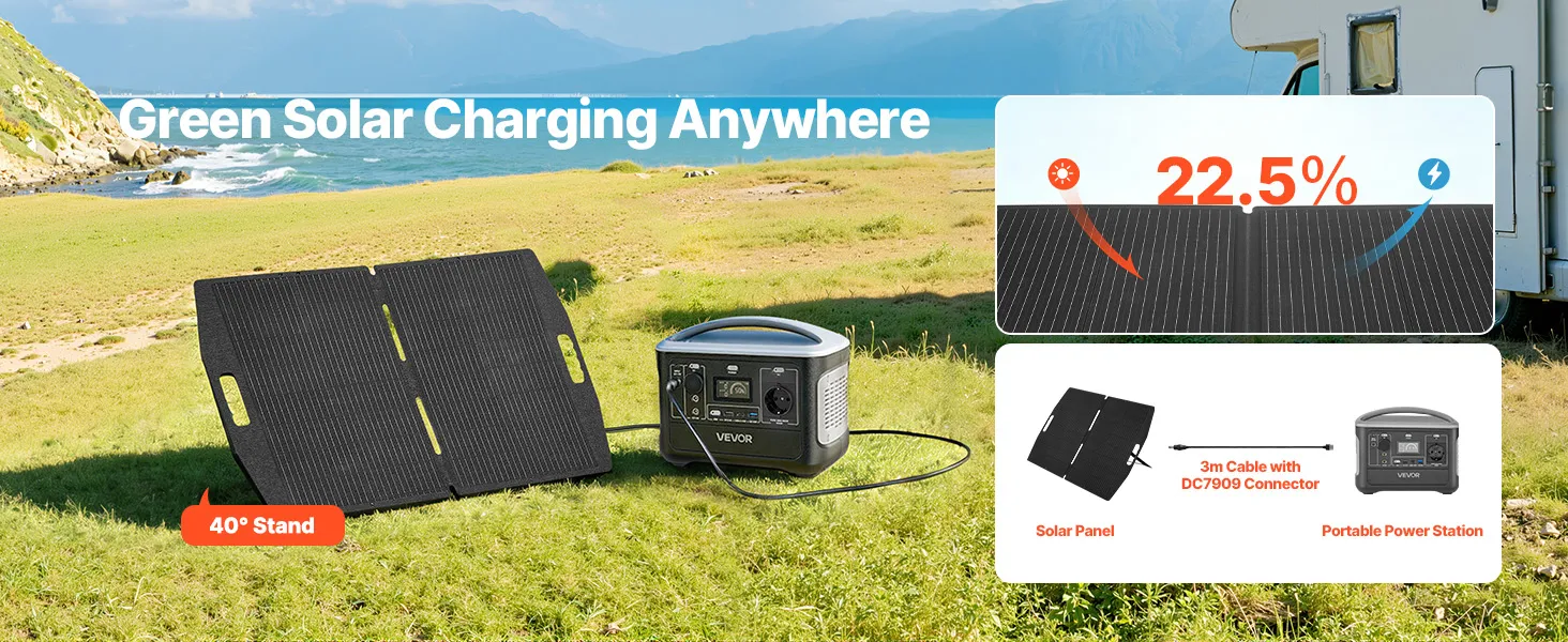 Wyposażony w panel słoneczny zapewniający czyste i zrównoważone źródło energii słonecznej podczas kempingów, podróży kamperem i jako awaryjne źródło zasilania.