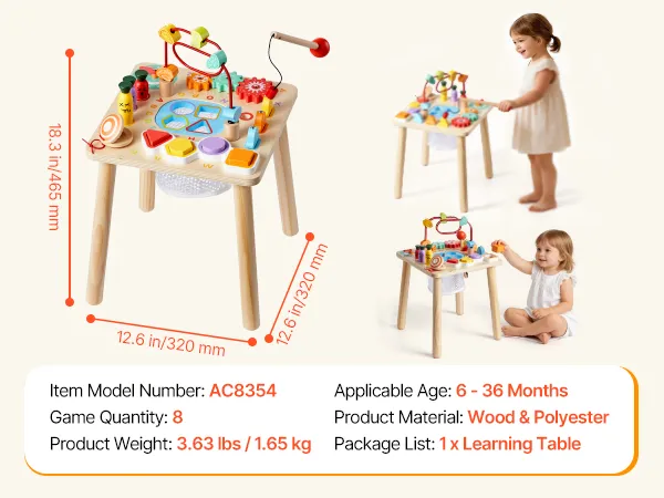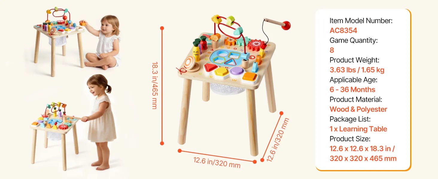 VEVOR Drewniany stół do zabawy, zabawka Montessori, stół do nauki 8 w 1, stół do zabawy dla dzieci od 6 miesięcy, idealny prezent na urodziny, Boże Narodzenie lub Dzień Dziecka, 6-36 miesięcy