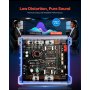 Crystal-Clear Audio Quality: Featuring low distortion (THD 0.1–0.15%) and an SNR above 92 dB, this 2 channel amp delivers clean, accurate sound from deep bass to smooth jazz, with minimal unwanted noise