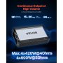Ten wielokanałowy wzmacniacz samochodowy zapewnia moc, czysty dźwięk o niskich zniekształceniach oraz możliwość mostkowania kanałów. Dzięki wysokiemu stosunkowi sygnału do szumu, stabilnej pracy w klasie D oraz odprowadzaniu ciepła ze stopu aluminium, pasuje do różnych pojazdów i jest łatwy w montażu.