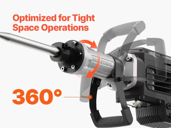 Rękojeść elektrycznego młota do betonu została zaprojektowana tak, aby dopasować się do naturalnego kształtu dłoni. Zintegrowane funkcje amortyzujące redukują wibracje. Urządzenie jest wygodne w długotrwałym użytkowaniu, a wielokątowa regulacja minimalizuje wysiłek, ułatwiając ciągłą pracę.