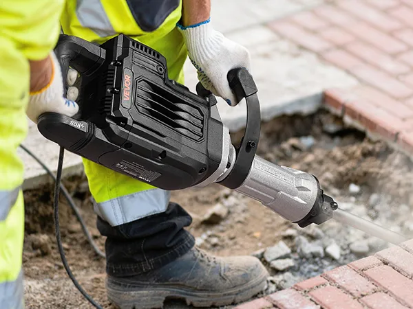 Wytrzymałość: Dzięki jednoczęściowej obudowie ze stopu aluminium, ten młot wyburzeniowy jest lekki i wytrzymały. W połączeniu z dłutami ze stali stopowej, wytrzymuje trudne warunki na placach budowy, minimalizując zużycie.