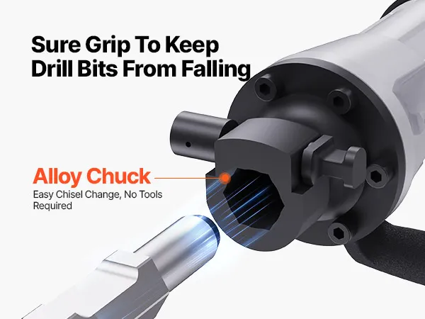 Wszechstronne dłuta: Nasza elektryczna młotowiertarka pneumatyczna jest wyposażona w dwa dłuta: płaskie i spiczaste. Zaprojektowana do rozbiórek, kopania rowów i innych prac w betonie, murze, cegle, płytkach i tynku. Idealna do instalacji rur, maszyn i instalacji hydraulicznych.