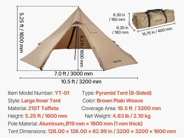 Namiot tipi VEVOR dla 2 osób, przenośny namiot zimowy z przyłączem do kuchenki, płócienne namioty kempingowe, lekkie namioty całoroczne, namiot grzbietowy, do wędrówek pieszych, wędkowania i plecakowania, rozmiar S