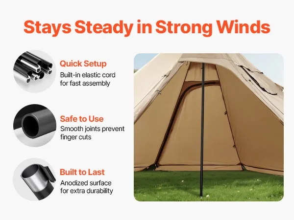 Wiatroszczelny i wodoodporny: nasz namiot kempingowy wykonany jest z odpornego na rozdarcia poliestru 210T o wodoodporności PU2500 mm, dzięki czemu zapewni Ci suchość w niesprzyjającej pogodzie.