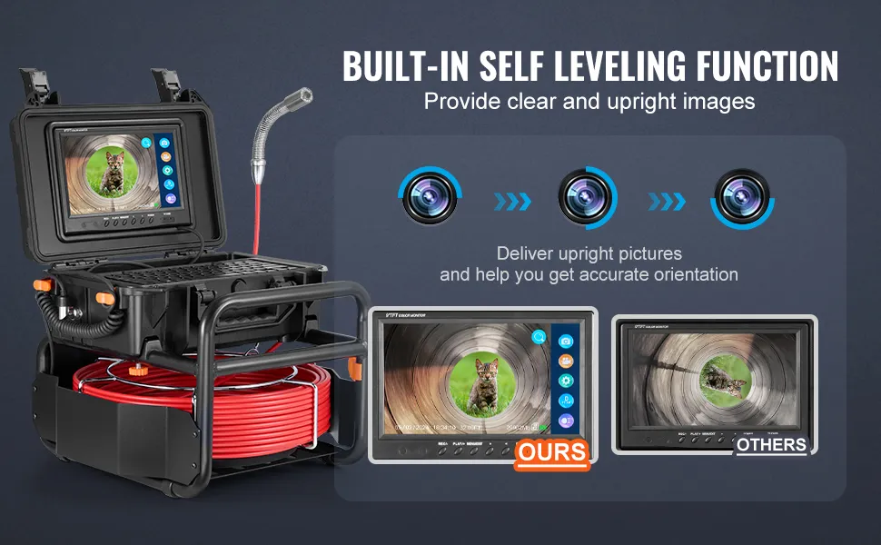 Ta kamera inspekcyjna do kanalizacji posiada wbudowaną funkcję samopoziomowania, która zapewnia pionowy obraz. Nasza kamera utrzymuje prawidłowy widok, umożliwiając inspekcję z precyzyjnymi obrazami i lepszym ustawieniem.