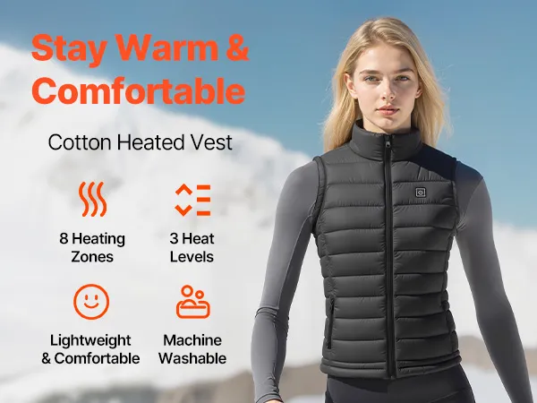 Ta podgrzewana kamizelka posiada 8 stref grzewczych i 3 ustawienia temperatury. Miękki materiał zapewnia wygodę i idealne dopasowanie, a konstrukcja, którą można prać w pralce, jest łatwa w czyszczeniu i zapewnia ciepło zimą.