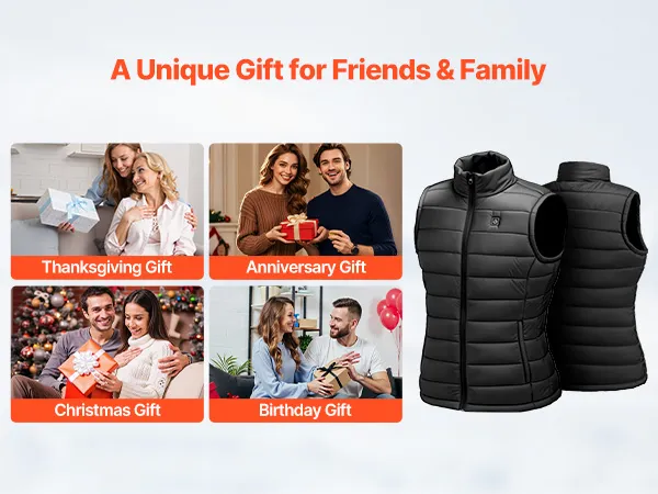 Nasza podgrzewana elektrycznie kamizelka doskonale nadaje się do dzielenia się nią z rodziną, przyjaciółmi lub ważnymi osobami podczas ciepłych uroczystości i rocznic, aby przekazać serdeczne życzenia.