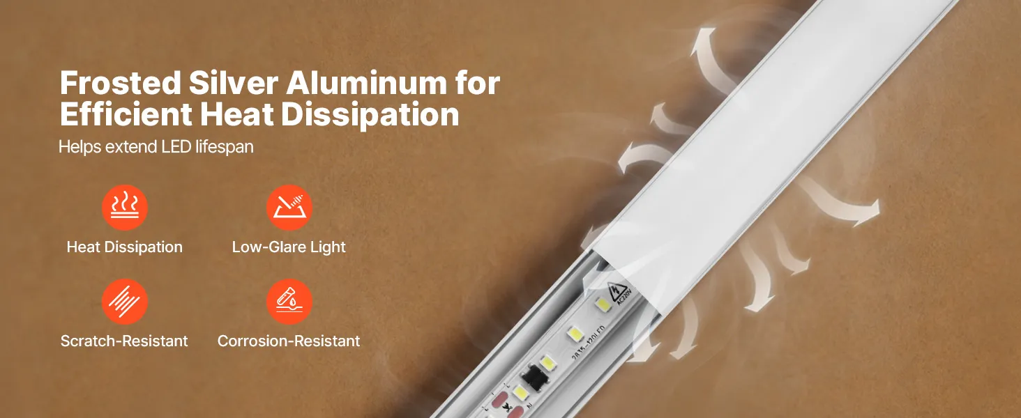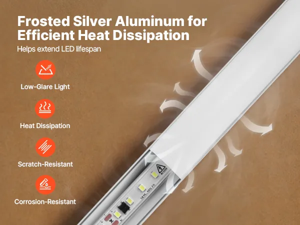 Lepsza ochrona: Ten dyfuzor LED wykonany jest z anodowanego aluminium, co zapewnia doskonałe odprowadzanie ciepła i dłuższą żywotność diod LED. Osłona chroni paski przed kurzem, włosami i wilgocią, zapobiegając żółknięciu, odkształcaniu i łuszczeniu się z upływem czasu.