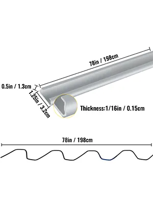 Drut uchylny i kanał blokujący ze stopu aluminium pakowane są po 10 sztuk. Rozmiar kanału blokującego (dł. x szer. x wys.): 78 x 1,25 x 0,5 cala/200 x 3,2 x 1,3 cm, grubość: 1/16 cala/1,5 mm. Jest solidny i trwały, spełniając wszystkie potrzeby szklarniowe.