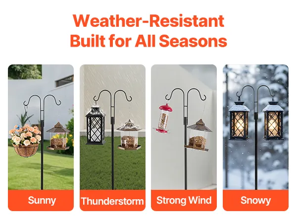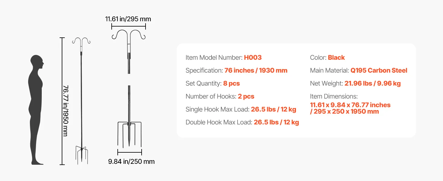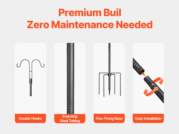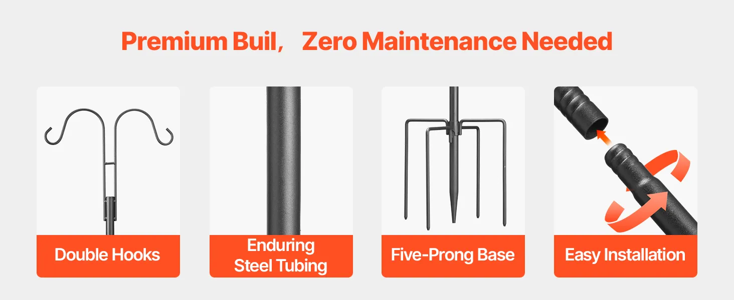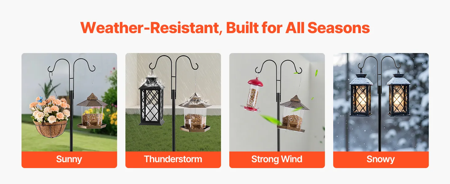 Wiatroszczelny i odporny na przechylanie: Wyposażony w solidną pięcioramienną podstawę, można go łatwo przymocować do podłoża i pozostaje stabilny nawet przy silnym wietrze, nie przewróci się i zapewnia bezpieczne noszenie. Niezawodny hak pasterski do wszystkich potrzeb na zewnątrz.