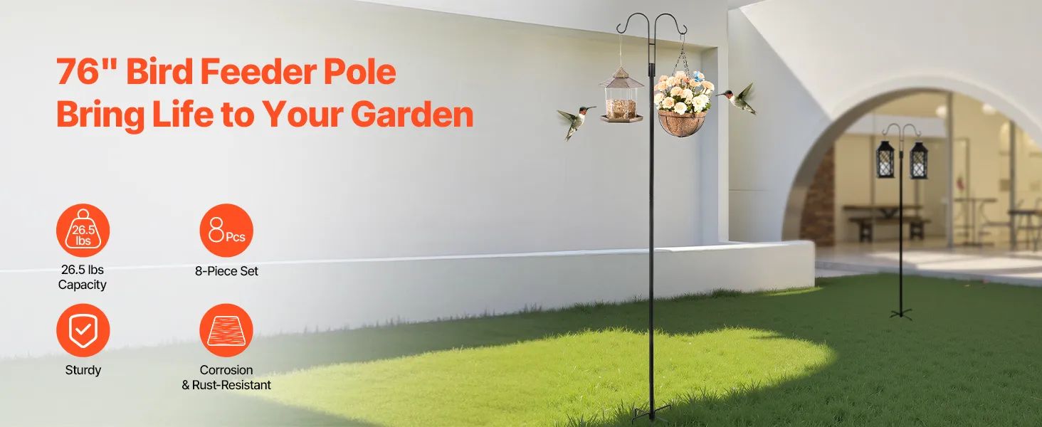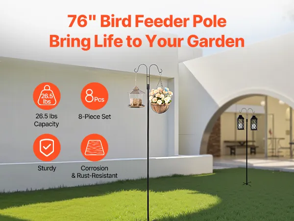 Konstrukcja Double Hook: Ten karmnik dla ptaków ma klasyczną konstrukcję z podwójnym ramieniem i 8 sekcjami, dodając artystycznego piękna Twojemu ogrodowi lub balkonowi. Zawieś rośliny, kosze z kwiatami i dekoracje, aby ulepszyć swoją przestrzeń na zewnątrz.