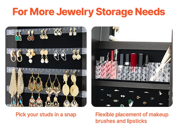 Obrotowe lusterko na biżuterię ma specjalne otwory na kolczyki i sztyfty, dzięki czemu możesz wieszać i organizować biżuterię osobno, co pozwala na szybki i łatwy wybór.