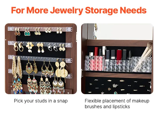 Obrotowe lusterko na biżuterię ma specjalne otwory na kolczyki i sztyfty, dzięki czemu możesz wieszać i organizować biżuterię osobno, co pozwala na szybki i łatwy wybór.