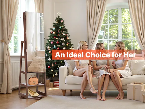 Idealny prezent: Stylowy, drewniany design idealnie pasuje do nowoczesnego lub vintage'owego wystroju. To stojące lustro z miejscem do przechowywania to idealny prezent dla żony, matki, dziewczyny lub przyjaciółek – idealny na urodziny, śluby, rocznice i inne wyjątkowe okazje.