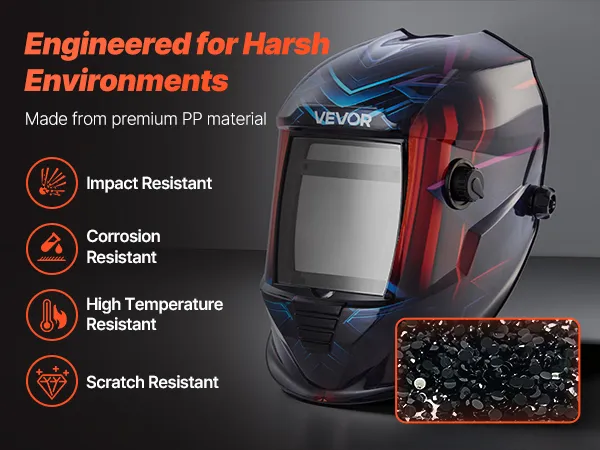 Błyskawiczne automatyczne przyciemnianie: Wyposażona w 4 inteligentne czujniki łuku, nasza osłona spawalnicza automatycznie przyciemnia się w zaledwie 1/20 000 sekundy – filtruje szkodliwe i intensywne światło, redukuje oślepiające działanie łuku, poprawia ostrość widzenia i ochronę oczu