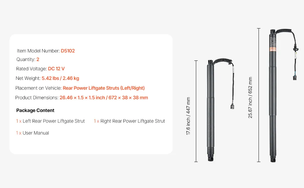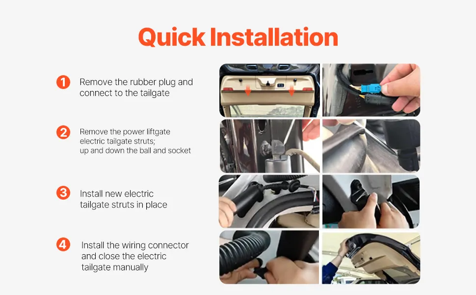 Wysokiej jakości silnik: Ten podnośnik lewej i prawej klapy bagażnika jest wyposażony w wydajny silnik o mocy 72 W i precyzyjny pręt sprężynowy, który minimalizuje wstrząsy i zapewnia płynny ruch. Dwurzędowe, 8-pinowe złącze i przegub kulowy zapewniają płynny i bezproblemowy montaż.