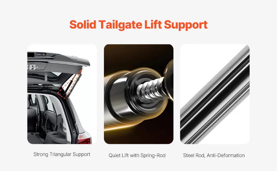 Solidne wsparcie: Dzięki potężnej sile wsparcia 424 N nasze amortyzatory klapy bagażnika otwierają i zamykają ją płynnie i bezpiecznie w ciągu 5-8 sekund, zmniejszając zużycie zawiasów. Sprężyna klapy bagażnika przeszła 30 000 testów zmęczeniowych, co zwiększa bezpieczeństwo.
